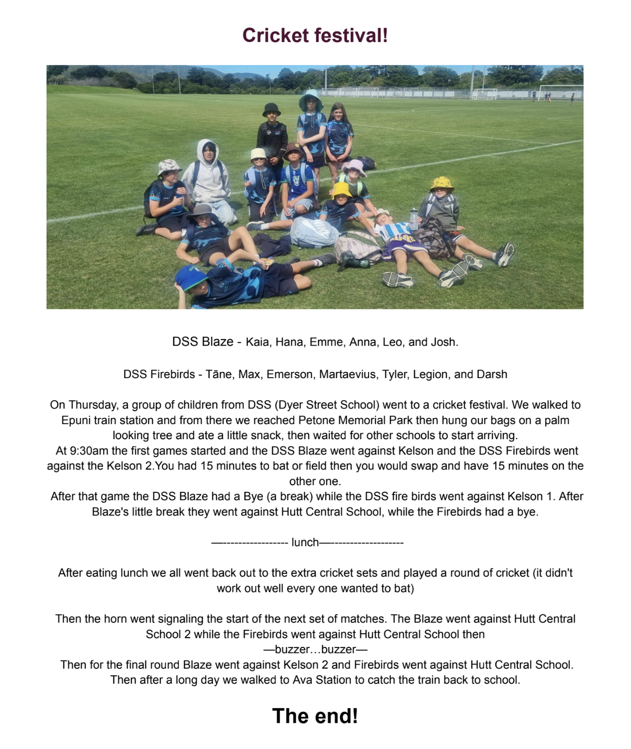 Please send any contributions for Writer’s Corner to megw@dyerstreet.school.nz – this can be work created at home or at school, and from any year level.