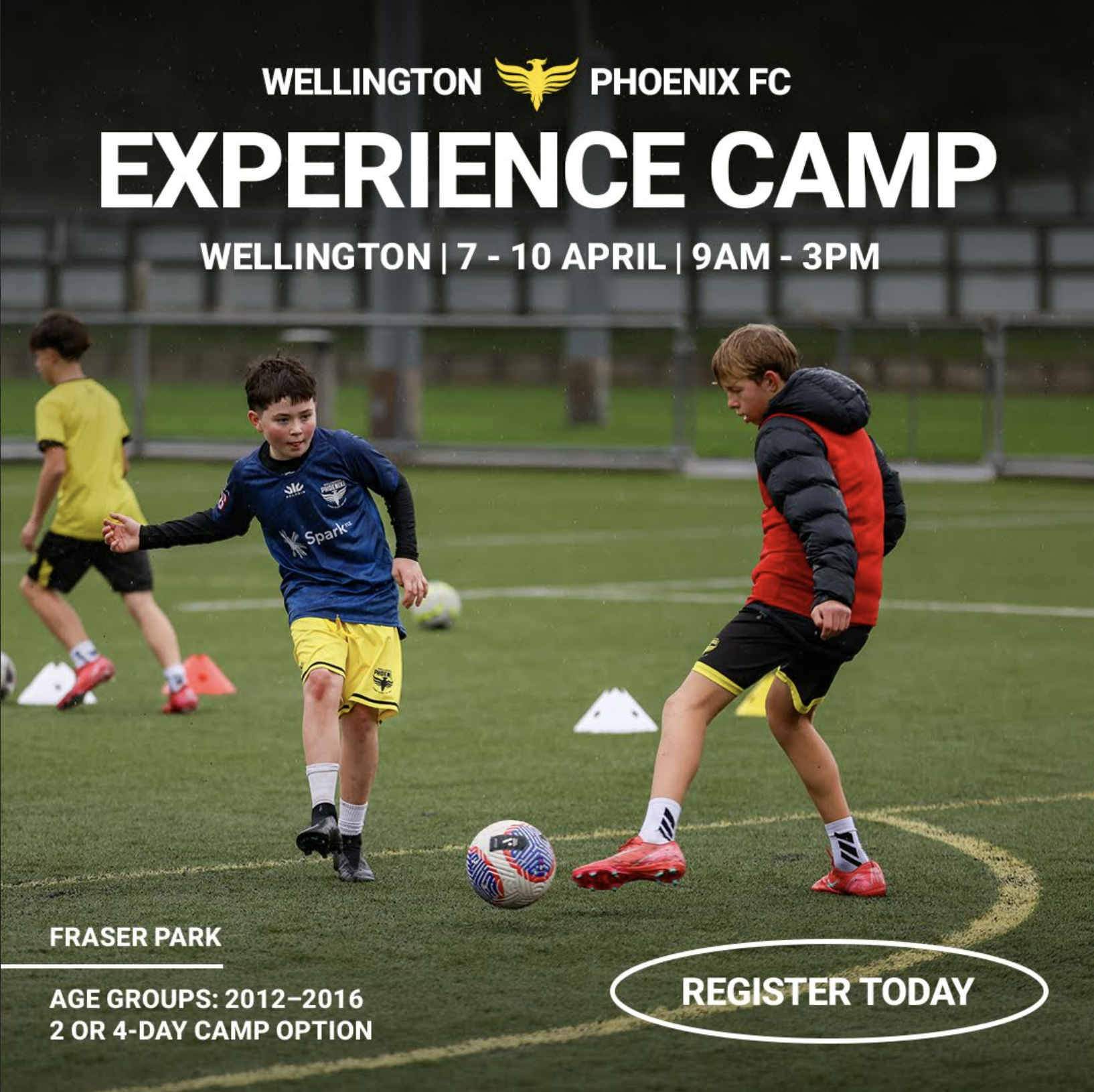 We are excited to announce we are hosting a Wellington Phoenix Experience Camp at Fraser Park from the 7th-10th April between 9am-3pm for players born between 2012-2016.